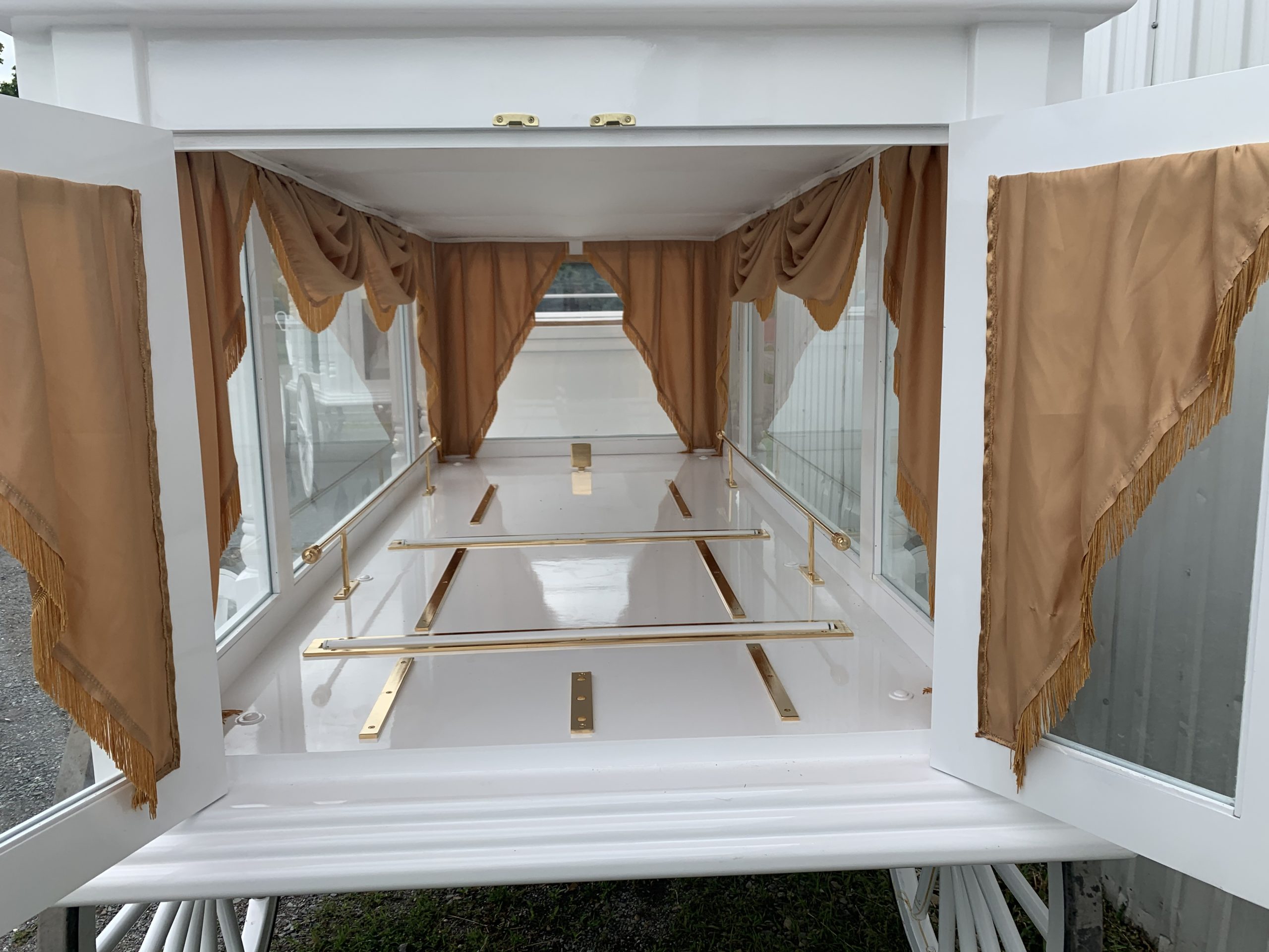 | Cette voiture peut être complètement personnalisée et tout opérateur de service de calèche se doit d’en posséder une. La famille du défunt appréciera la distinction d’amener leur être cher vers son dernier repos dans cette magnifique voiture. Elle a une tourelle complète et des freins hydrauliques. | ||||||||||||||||||||